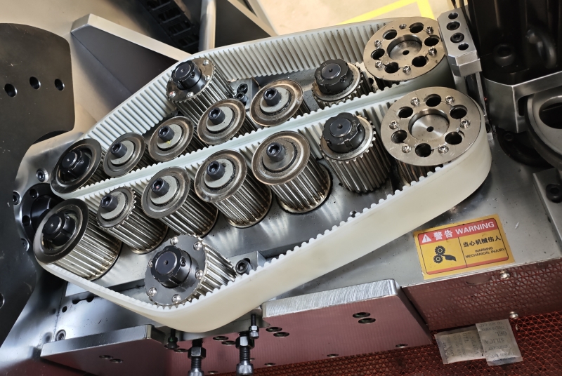 1、送料機構采用履帶式結構,能夠更好的與銅鋁排絕緣層表面貼合增加附著力推動送線確保送線精度,切換不同線徑生產無需更換送料輪,調節行程即可。